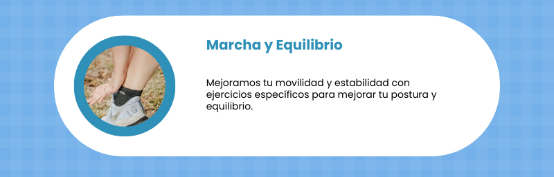 - Corrección de la marcha y equilibrio: Mejoramos tu movilidad y estabilidad.