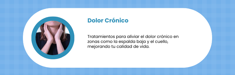 - Alivio del dolor crónico: Tratamientos para condiciones como lumbalgia y cervicalgia.